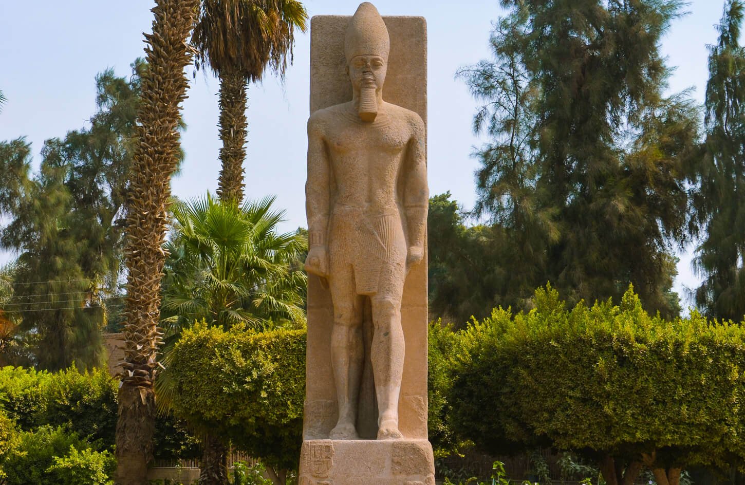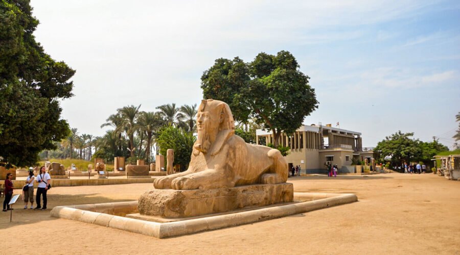 Continue to Memphis, the ancient capital of Egypt, established by King Narmer around 3100 BCE. Although much of the original city has vanished, its open-air museum reveals remnants of its former glory—including the colossal statue of Ramses II and the elegant Alabaster Sphinx.
