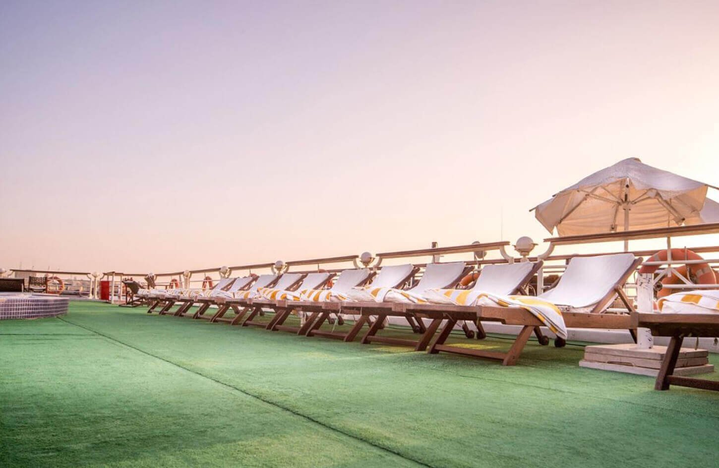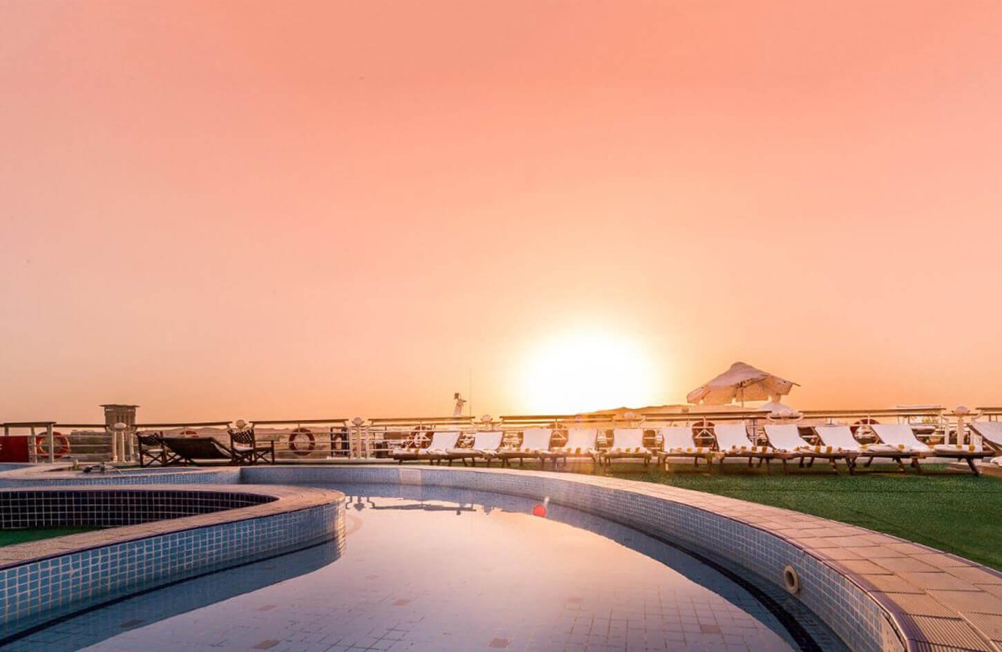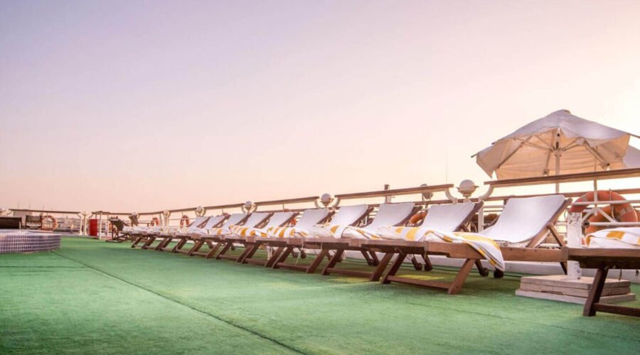 The Concerto Nile Cruise offers a luxurious journey along the Nile River, combining elegance with Egypt’s rich heritage. This 5-star cruise delivers the perfect blend of comfort, relaxation, and adventure for those eager to explore ancient Egypt. The ship features spacious, stylish cabins and suites with large windows showcasing stunning Nile views. Guests can relax in elegant lounges or on the sun deck, which includes a swimming pool, bar, and comfortable seating.
