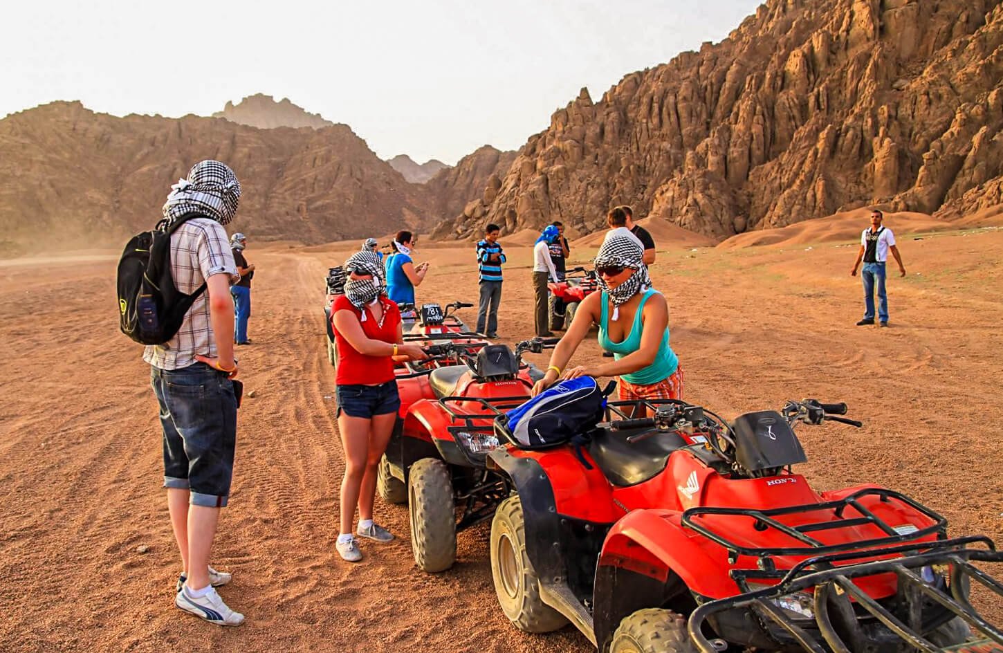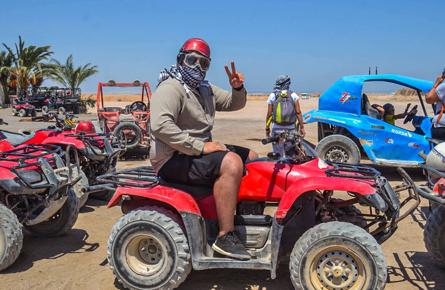 Embark on an unforgettable Desert Super Safari Adventure in Sharm el-Sheik. Your journey begins with an exhilarating ATV ride across the vast desert, where golden sand dunes stretch endlessly into the horizon. The thrill of navigating through this dramatic landscape sets the tone for an exciting day ahead.
