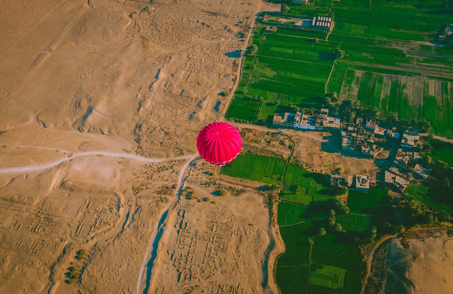 Panoramic Views: Soar over Luxor’s West Bank, capturing breathtaking aerial views of the Valley of the Kings, Valley of the Queens, and the grand temples of Karnak and Hatshepsut.