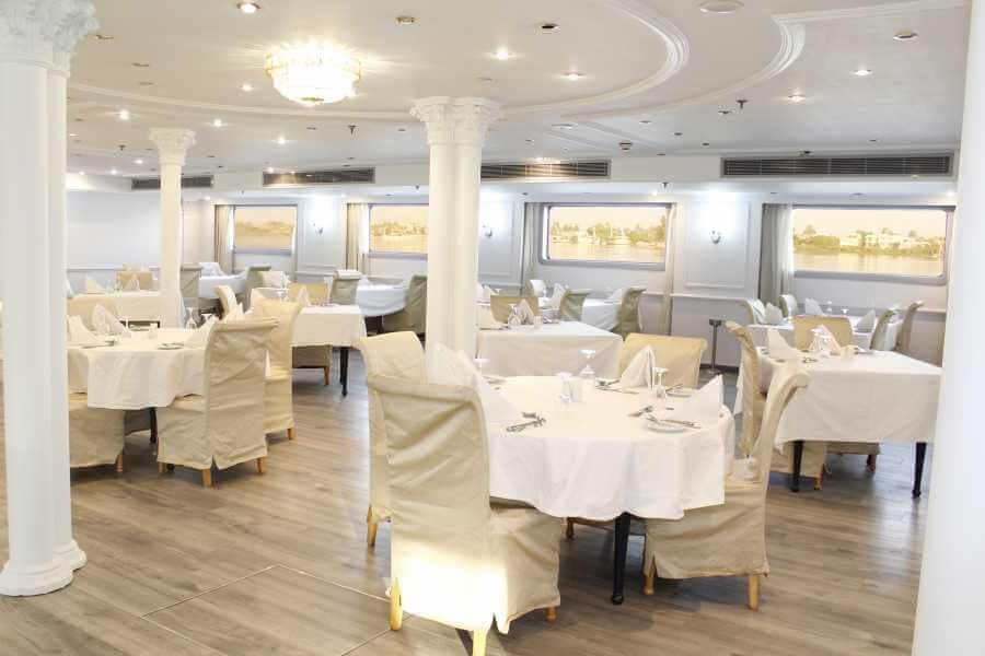 The M/S Nile Dolphin is a five-star deluxe Nile cruise that combines classic elegance with modern luxury, offering travelers a truly memorable journey between Luxor and Aswan. Inspired by French colonial design, the ship features beautifully furnished cabins and suites, many with private balconies for stunning views of the Nile. Guests can enjoy first-class amenities including a sun deck with a swimming pool, fine dining restaurants serving international and Egyptian cuisine, and attentive hospitality that ensures comfort throughout the voyage.