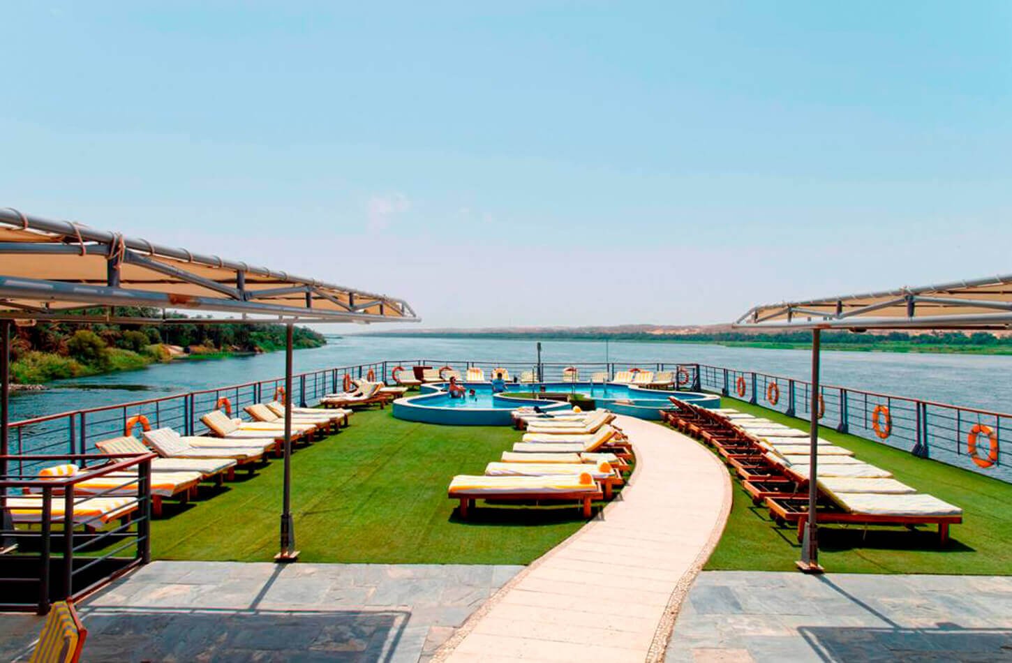 Onboard, the cruise features a gourmet restaurant serving a mix of local and international dishes, a stylish lounge bar, and a sun deck perfect for unwinding while enjoying the scenery. The cruise itinerary includes visits to some of Egypt’s most famous archaeological sites, such as the temples of Luxor and Karnak, the Valley of the Kings, and the temples of Edfu and Kom Ombo.