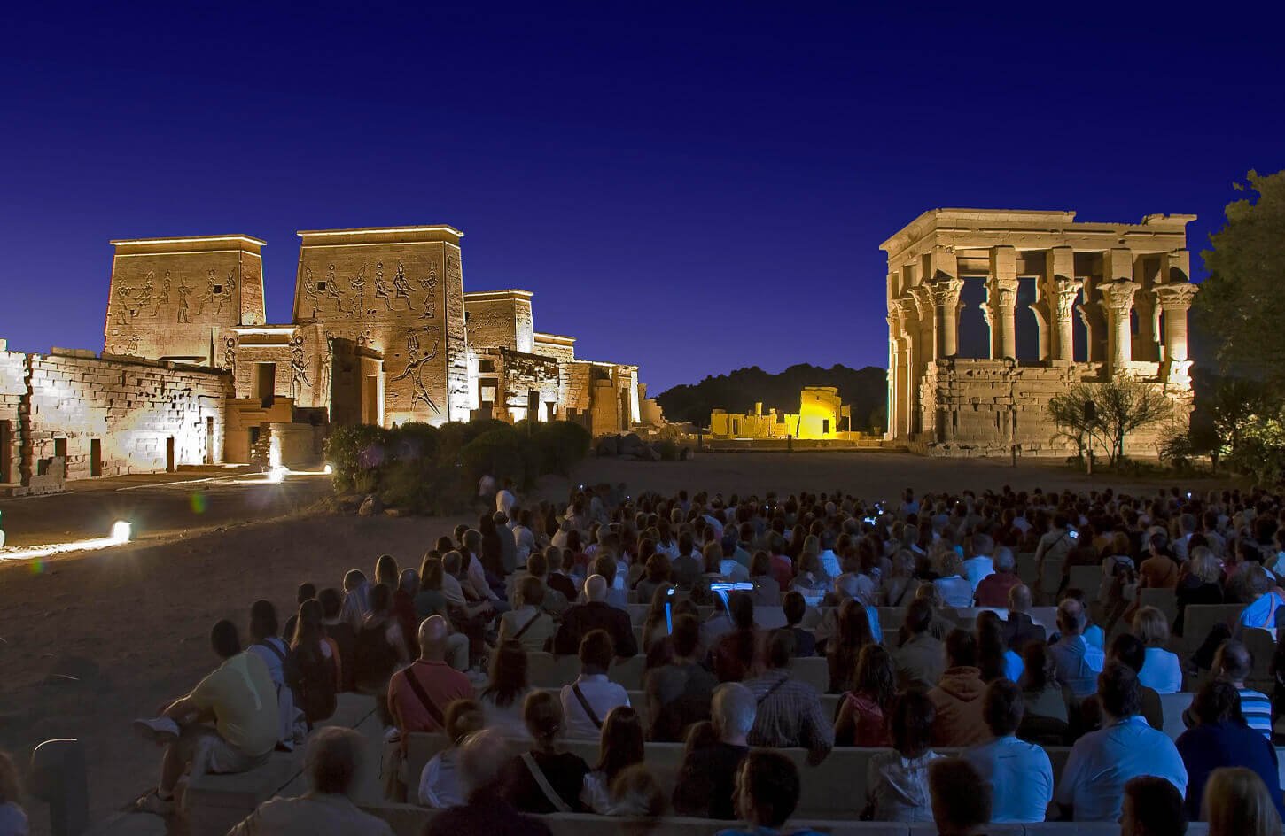 Experience the mesmerizing Sound and Light Show at Philae Temple, a magical 1-hour journey that will transport you back to ancient Egypt. As the sun sets, your guide will pick you up from your Nile cruise or hotel in Aswan, and you’ll embark on a romantic boat trip to Philae Temple Island, where the adventure begins.